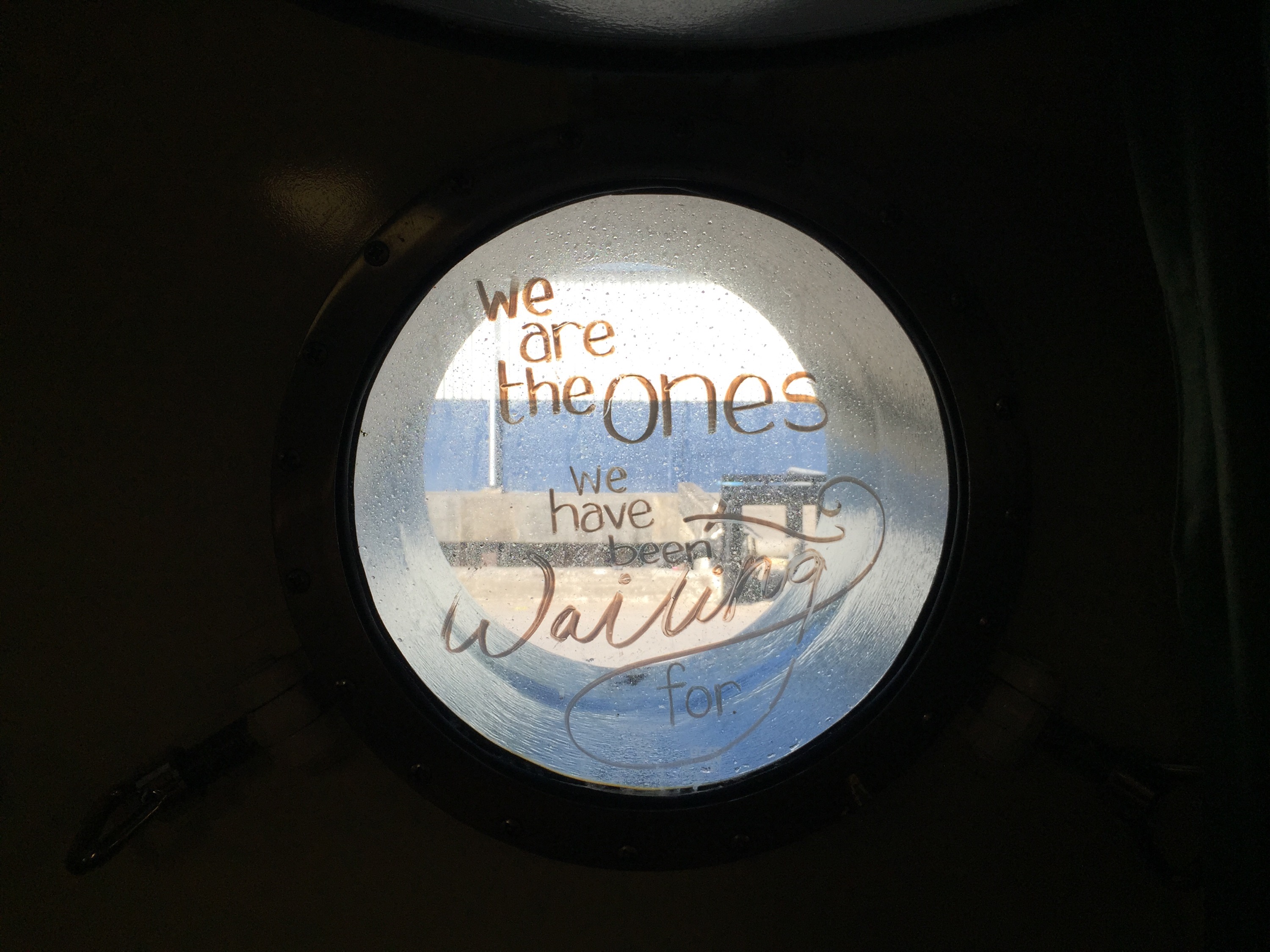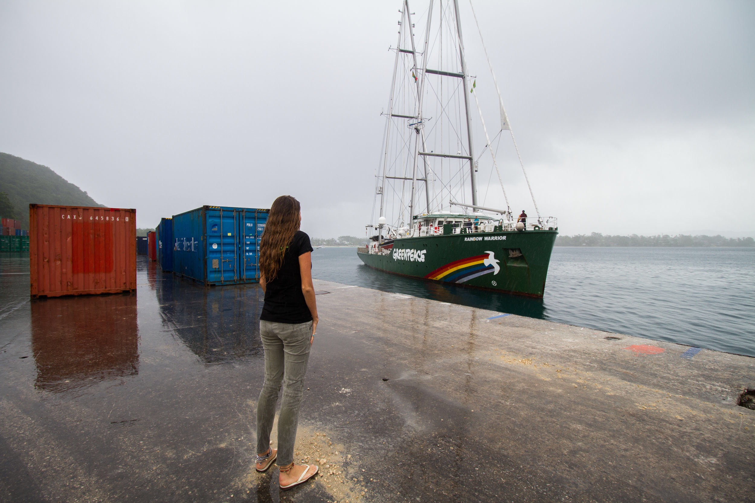 Beaming up love and courage from on board the Rainbow Warrior ship in the Port Vila harbour of Vanuatu. Where we have cabin. Marked ‘Campaign Crew’.